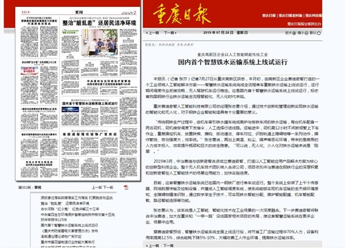 近日,中冶賽迪自主研發(fā)的智慧鐵水運輸系統(tǒng)在湛江鋼鐵完成全流程單車重載鐵水運輸上線試運行,標志我國鋼鐵行業(yè)鐵水運輸全流程智能化、無人化時代的來臨,為智博會開幕增添亮點。7 月 28 日,《重慶日報》第2版“智能化:為經濟賦能 為生活添彩”專欄推出新聞《國內首個智慧鐵水運輸系統(tǒng)上線試運行》,介紹了該產品的應用場景以及該產品對于突破傳統(tǒng)鋼鐵生產瓶頸、提升勞動效率所帶來的巨大效益。文中還報道了中冶賽迪與創(chuàng)新工廠旗下創(chuàng)新奇智合資成立創(chuàng)新型科技企業(yè)賽迪奇智。