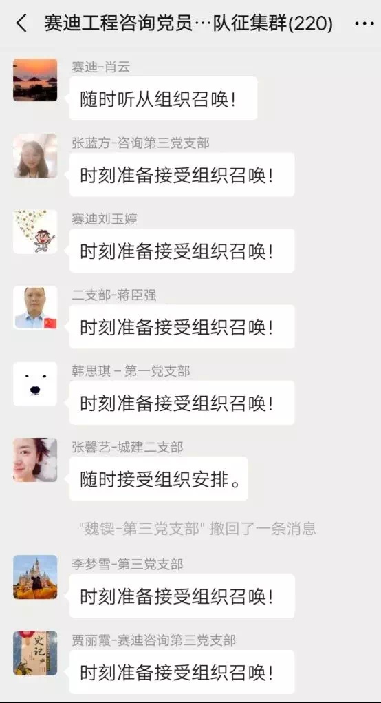 為眾志成城抗擊疫情,確保各項(xiàng)生產(chǎn)經(jīng)營任務(wù)安全順利推進(jìn),克服承建項(xiàng)目量多面廣的客觀困難,滿足各地業(yè)主開復(fù)工的緊迫需要,重慶賽迪工程咨詢公司黨委迅速研究決定成立了黨員突擊總隊(duì),同時(shí)根據(jù)緊迫生產(chǎn)任務(wù)需要適時(shí)召集成立突擊分隊(duì),為打贏抗擊疫情阻擊戰(zhàn)、保障城建生產(chǎn)經(jīng)營任務(wù)的全面推進(jìn)提供堅(jiān)強(qiáng)的組織保障。為便于召集黨員開展工作,他們建立黨員突擊隊(duì)征集群,僅2個(gè)小時(shí)來自公司黨委所屬7個(gè)黨支部近200名黨員就入群集結(jié)。當(dāng)在群里看到 “哪里有炮聲,哪里就是戰(zhàn)場,突擊隊(duì)就奔赴到哪里”的號召,全體黨員紛紛接力答復(fù)“時(shí)刻接受組織召喚”。在這場沒有硝煙的戰(zhàn)場上,每個(gè)黨員都能從大局出發(fā),用實(shí)際行動彰顯黨員本色。特別是在春節(jié)期間,重慶賽迪工程咨詢公司接到多個(gè)醫(yī)院項(xiàng)目緊急復(fù)工的任務(wù),公司黨委立即派遣由精英力量組建的黨員突擊隊(duì)奔赴前線,出征人員毫無畏懼、挺身而出,義無反顧前往疫情防控一線馳援項(xiàng)目建設(shè),保障后備醫(yī)院救治資源如期到位。此時(shí),第一支黨員突擊隊(duì)正夜以繼日馳援項(xiàng)目建設(shè)。