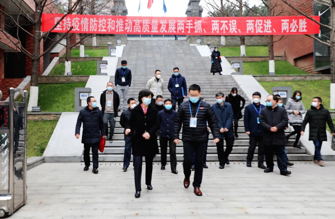 2月20日下午,重慶市人大常委會主任張軒赴渝中區督導落實分區分級分類精準防控工作時,來到中冶賽迪集團黃花園辦公區檢查調研,走進辦公區詳細了解疫情防控措施落實情況、員工安全保障、疫情對生產經營影響情況及復工復產情況等。黨委書記、董事長肖學文向她作了匯報。