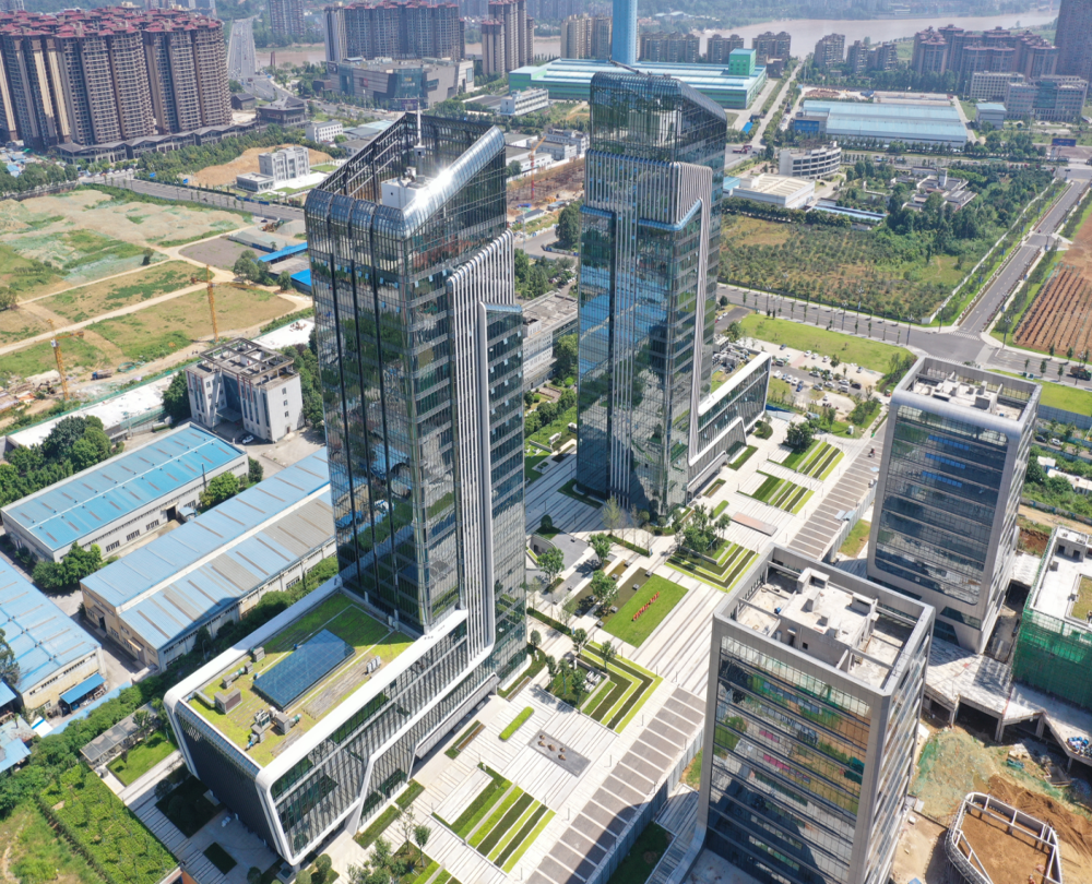 創(chuàng)新科技孵化大樓總建筑面積101409.42㎡,地上建筑面積69298.58㎡,地下建筑面積32110.84㎡,建筑總高度為99.6m。大樓設計結構為鋼管混凝土框架-鋼板組合剪力墻結構,正負零以上為裝配式結構,裝配率為92%。創(chuàng)新科技孵化大樓是樂山高新區(qū)地標建筑,定位金融產業(yè)總部、總部經濟、政務服務辦公等。