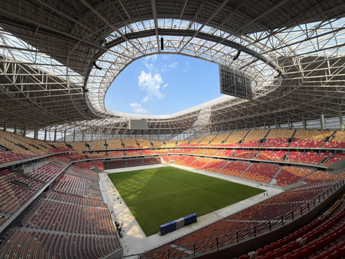 重慶龍興專業足球場 該工程總建筑面積約172000平方米,地下一層,地上五層,固定座位數不低于60000座,場地標準為承辦國際性比賽的標準足球場。 |