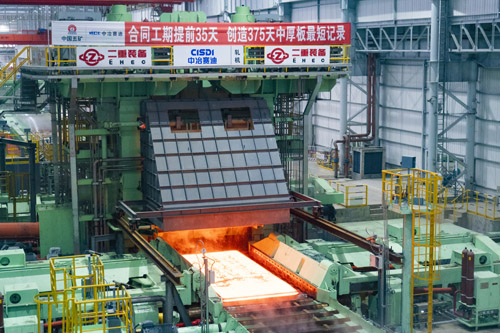 國內(nèi)首條全線數(shù)字化寬厚板生產(chǎn)線,采用中冶賽迪自主研發(fā)的智能加熱板坯加熱爐、超大開口度高性能除鱗箱等多項(xiàng)核心裝備