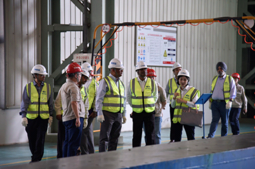 Avneesh Gupta’s delegation is pictured at CISDI’s equipment manufacturing workshop in Chongqing